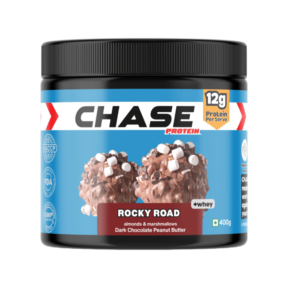Chase Protein Rocky Road Peanut Butter ? indulgent rocky-road flavor with chocolate, marshmallow, and high protein for fitness lovers.