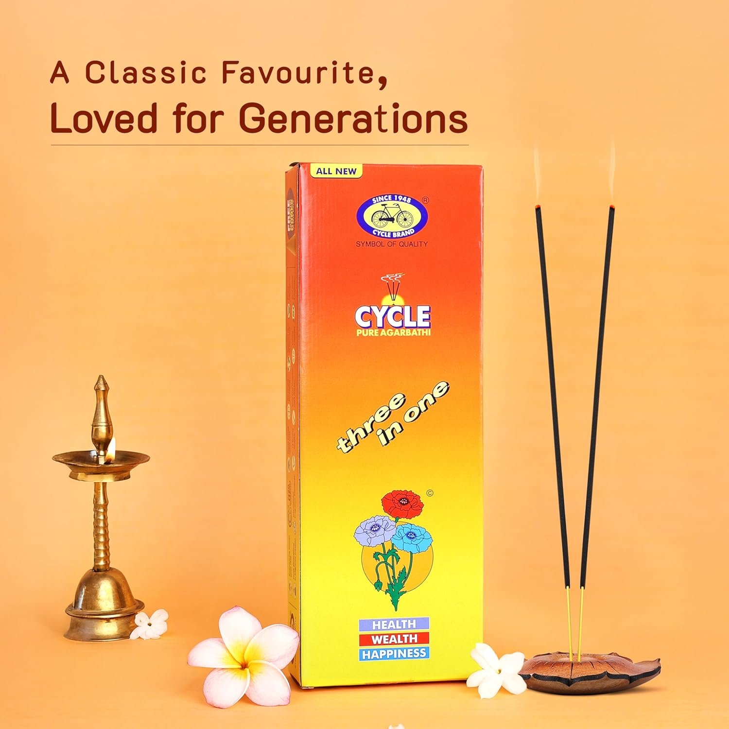Cycle Pure Three in One Incense Sticks Agarbatti ? Aromatherapy Meditation, Puja & Refreshing Ambience (Pack of 2, 500g)